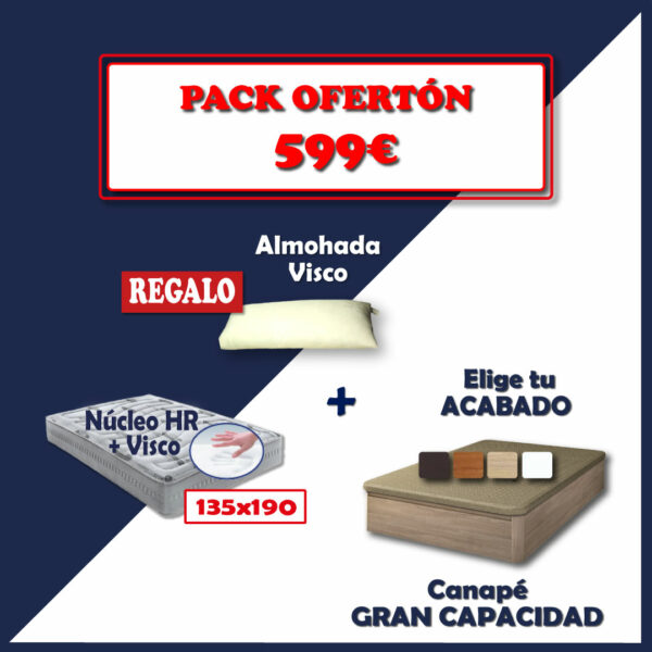 PACK COLCHÓN VISCO + CANAPÉ GRAN CAPACIDAD + ALMOHADA DE REGALO